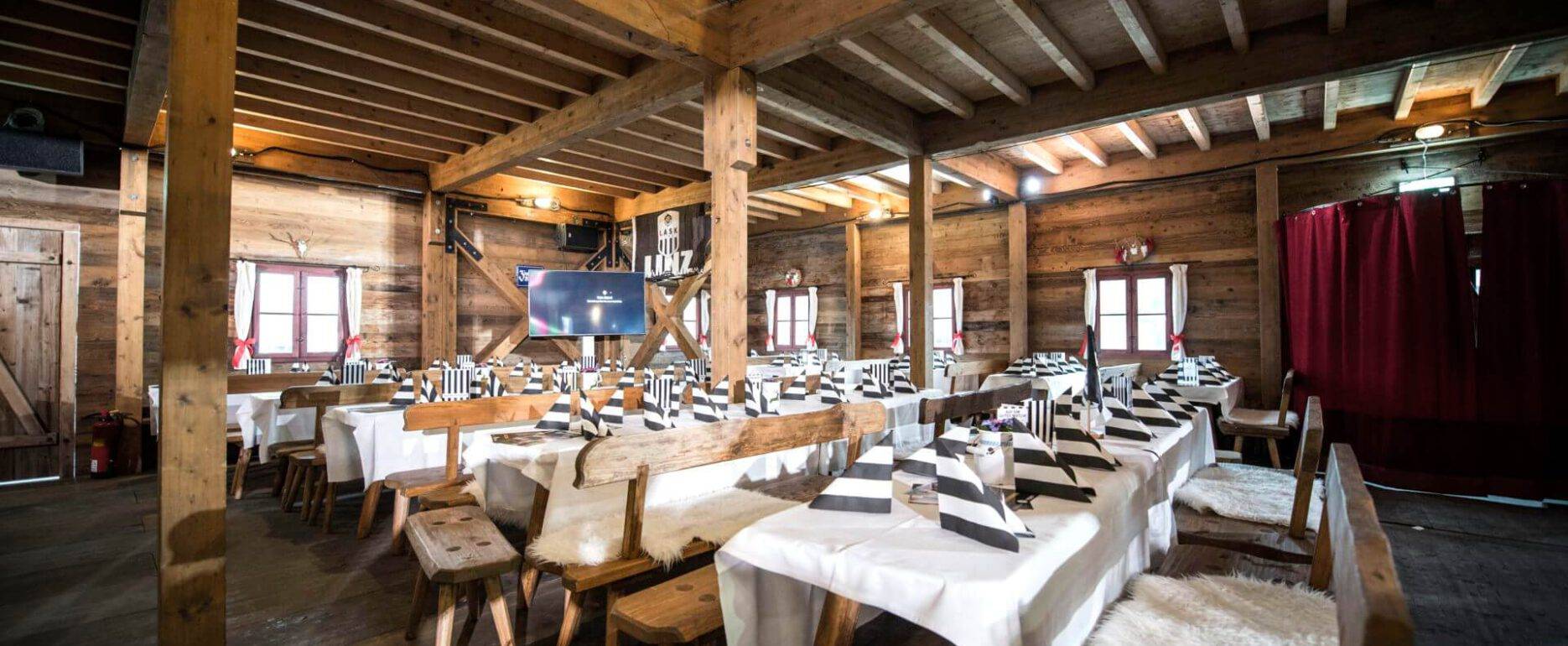 Feiern Sie in der originellen Altholzhütte mit traditionellem Flair und atemberaubender Atmosphäre.